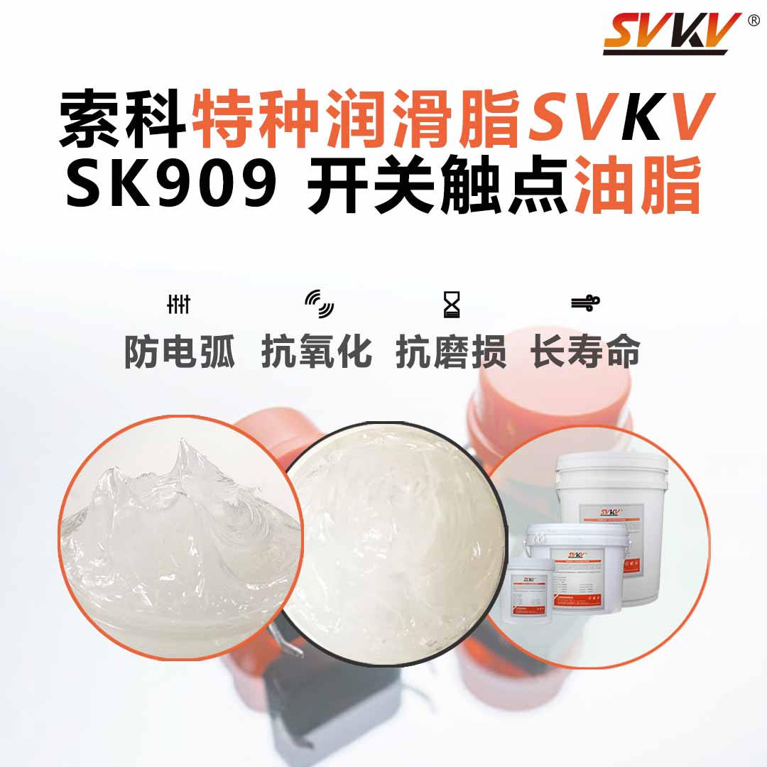 推薦索科SVKV SK909系列開關觸點油脂。專為電子電器的旋轉和滑動開關的防電弧、抗氧化、抗磨損和保護而設計,能有效降低接觸電阻和溫升,防止積碳的產生。